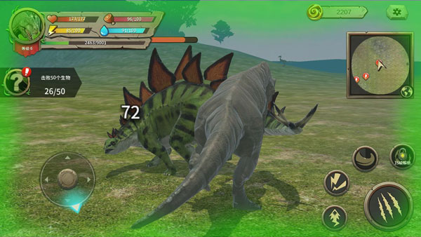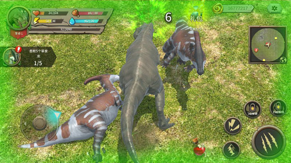 在游戏中,各位小伙伴需要走进森林中成为一只大恐龙来生活,不管遇到什么危险,都要想办法克服。在这里小伙伴们可以在探索这广阔的恐龙世界,这里还生活着各种各样的凶猛恐龙和动物,你会与之狭路相逢,玩家可以选择与之搏斗,厮杀,将其征服!当然也要审时度势,毕竟君子报仇十年不晚。体验在大自然中生存的艰难,更有趣的地方是,在这里你还可以找到你的恐龙伙伴,与你一同生存,一同战斗。