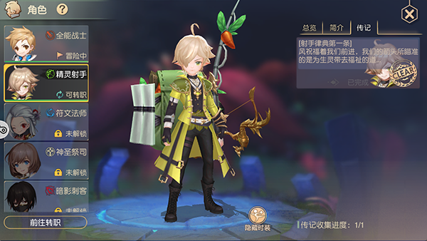 开放5种职业体验:全能战士、符文法师、精灵射手(双性别)、神圣祭司(双性别)、暗影刺客;完成各职业传记任务可切换职业进行体验。PS:其他职业双性别持续开发中。
