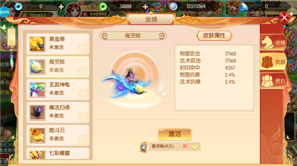 激活的坐骑可以管制宠物,0氪玩家建议主角、宠物、坐骑都选择相同属性倾向,土豪则可根据宠物属性和角色属性分别骑乘和管制不同坐骑达到属性最大化效果。