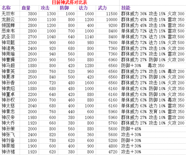 6、关于武将选着和进阶下次再说吧。先附上神武将图。供各位基友们参考。