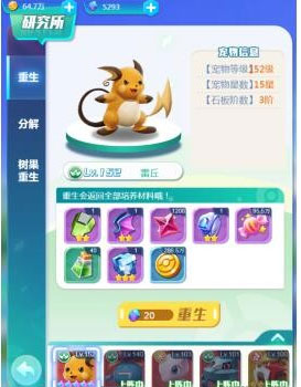 途径6:【研究所】系统里的重生,当训练师们获得更高级的宠物,而又缺乏经验时,我们可以在【研究所】重生宠物,拿回之前培养这个宠物的所有资源。用来提升更厉害的宠物。