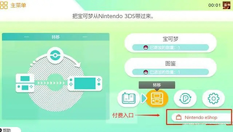 3、不过由于迫不及待想要把3DS的宝可梦传入这里,我们暂且先跳过这段内容,可以看到UI下方有个转移功能,这就是将《pokemon bank》传入《pokemon home》的功能,