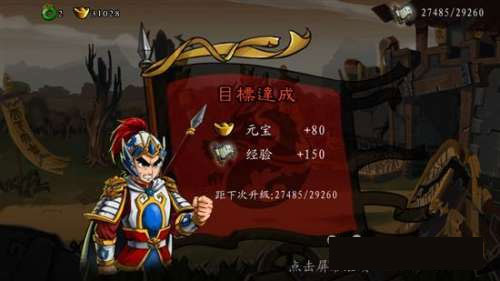 击杀12个黄巾贼的任务完成后,在击杀几个小兵,那么这关的boss先生:邓茂也就出现了,然后我们会看到这个时候,我们的大技能也该冷却完毕了,然后我们就可以像玩水果忍者一样玩boss先生了。大技能结束后,我想boss不会剩下太多的血了,普攻几下就过了。