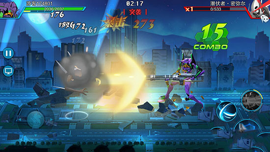 NN爆雷零式:属于近程攻击技能,EVA会扛起一颗火箭前进,并对途中敌人带走并产生持续伤害,在大招结尾火箭爆裂,对敌人产生瞬间伤害。