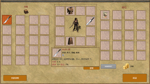 8、能够看到自身装备、背包和箱子里的物品,点击获取;
