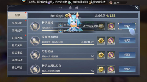 4、在成就界面可以领取各种奖励,包括金币、道具等