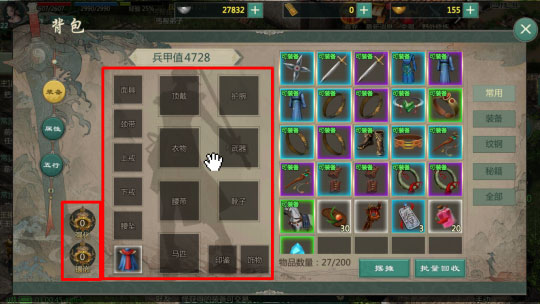 任务装备的提升,主要包括以下的4个方面:①装备强化