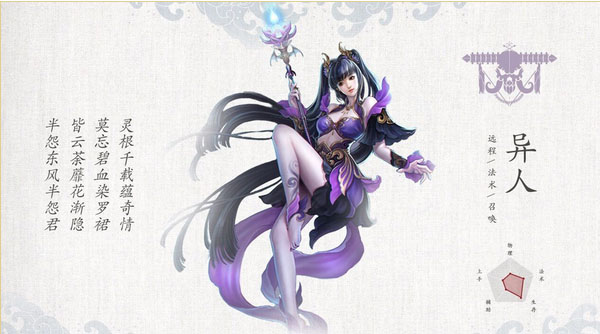 - 狐妖: 法师型职业,以法术攻击为主,技能绚丽多变。