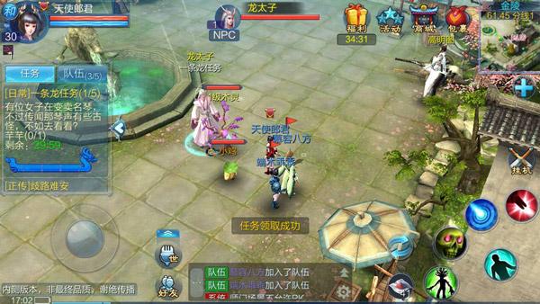 参与方式:3人以上组队,在金陵(61,47)处,找到NPC龙太子,领取一条龙任务,即可帮助龙太子调查三界异闻了。