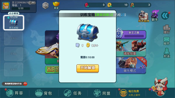 另外,游戏里取消了传统的防御塔机制,改成主城半血会弹走敌军的设计,感觉特别新鲜。新手的话还有不少福利,比如每天都能免费抽卡包、签到领奖励,还能用月卡加速宝箱开锁时间,挺方便的。