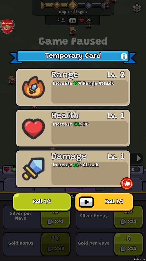 3、获得临时卡可给生命力、攻击力、防御力升级。