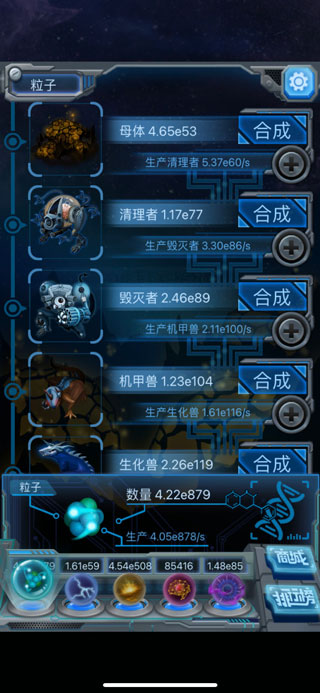 游戏就是慢慢发展一个低级的物质从而合成下一个高一级的物质,目的是逐渐繁荣起来,拥有生机勃勃的宇宙甚至世界。