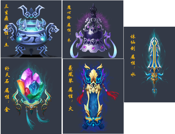 (3)神器法宝:宝原始属性条数上限为5,包含2条新属性,法宝原始属性成长高于仙阶法宝