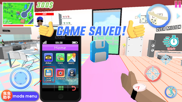 内置存档特别方便,汉化后玩起来更轻松。新手攻略详细,操作简单,左边控制移动,右边攻击跳跃,切换武器也容易。游戏世界开放,可以探索城市和建筑,收集武器装备,体验各种搞笑冒险。