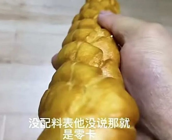 在一个视频中看着一个麻花说道“呃这也没有配料表啊!没配料表,他没说那就是零卡”,然后咔咔炫嘴里了哈哈哈哈。