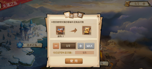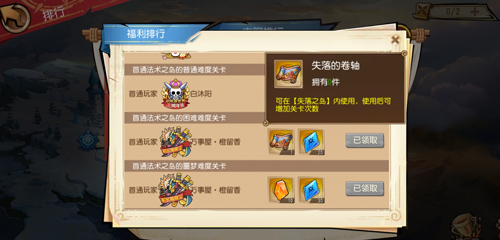 1、失落的卷轴:可以补充失落之岛挑战次数。每日可通过系统自动获取2张。