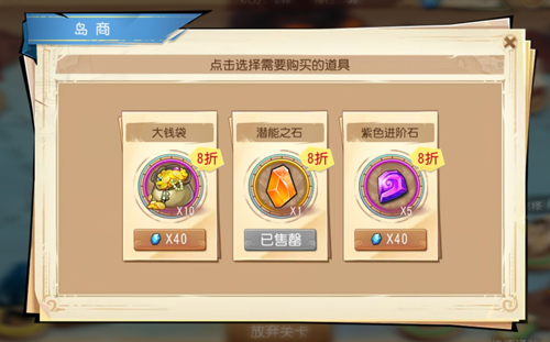 5、岛商:花费钻石购买道具的选择,很显然,潜能之石是必须拿下的;其余道具的价格并不具备性价比,笔者不推荐。