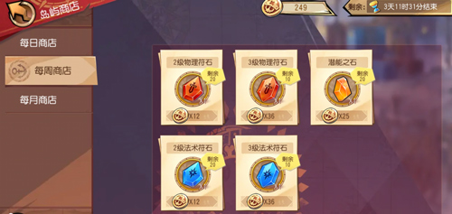 【每周商店】:可购买2级符石、3级符石、潜能之石。