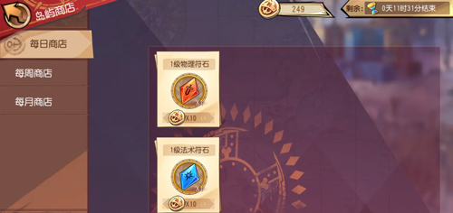 【每日商店】:可购买1级符石,每颗10潜能币,不限购。