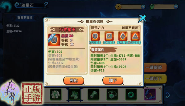 在《花千骨正版》手游中,角色战斗力加成的很大一部分占比都是来源于璀星石,璀星石的重要性不言而喻。今天小编给大家介绍一套璀星石,属性加成比较可观,重要的是便于获取。这套璀星石目前就是品质为30的洪荒之力。目前洪荒之力璀星石套装有:万物星玉、启发星玉、星辰星玉、女娲星玉。
