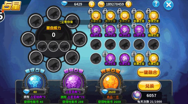 2、星座获得:风暴,潮汐,复苏,需要用1000积分兑换,狂想需要从活动中进行抢购。其余均可从高级和极品占星中获得。