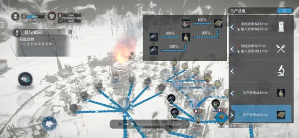现在煤矿,煤油,木头供给都是100,这代表生产效率最大,没有人员浪费,我们注意是不是100情况导致人员浪费,假设:煤矿到煤油供给是78这个时候表示生产上级资源供给不足,生产煤油,煤矿不足。这个时候怎么办1.生产煤矿的人员增加,如果煤矿人员最大,再多给一条煤矿运输线3条,供给变成100。