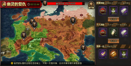 这个国战就非常简单了,国战开启后,全地图随机出现5个刷幽灵的地点,玩家只需要进入刷怪地点打怪就行。个人奖励和阵营奖励依然可以轻松完成,这场国战的关键是对幽灵真身的致命一击,这个奖励是个人的,而且满丰厚的,有300金砖、10个研发许可和10万石油。幽灵真身系统上注明是随机出现在活动城上,其实不然。根据我的了解和实战验证得知有下面的隐藏设定。
