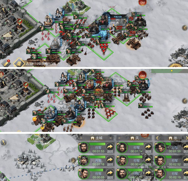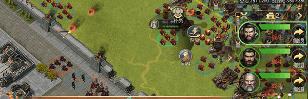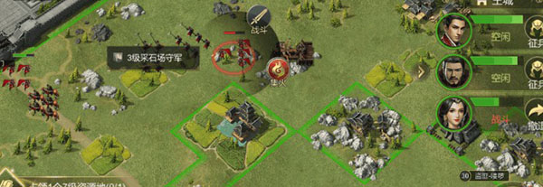 在对城池进行进攻时城池守军队伍会自动对来犯部队进攻,城池守军每个城门固定分配若干队,按照县城、郡城、关卡、国都、洛阳不同难度,会有相应不同难度的守军驻防。