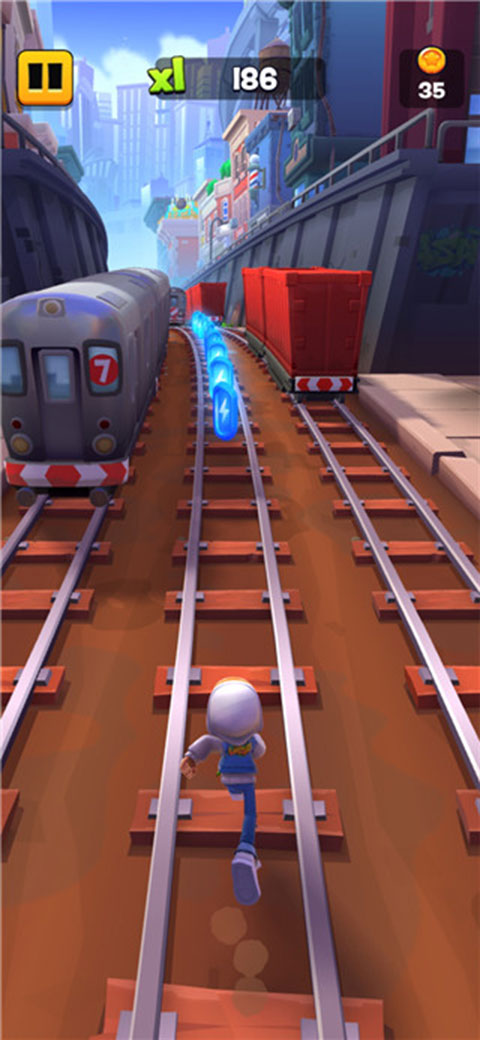 而作为玩家的你,进入游戏后将会遇到迎面而来的火车,期间所有的路障等都是你的阻碍,所以只有集中注意力才可以将分数提高到极限,对我们大家的反应能力是一种莫大的挑战。除此之外,游戏以“滑板”为核心玩法,通过收集场景当中的蓝色电池来激活滑板,不再是需要场外购买的消耗品,搭配精心打造的角色技能体系,可玩性非常高,喜欢的玩家现在就快来下载进行体验吧。ps:由于是国际版,国内用户可以需要加速器才能正常运行,推荐使用CC加速器。