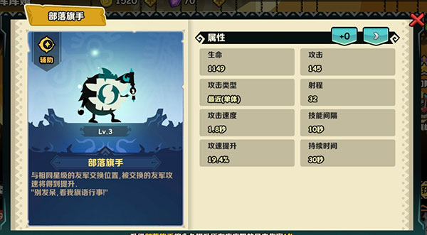 4、接着布置一到两个的狂风先知,这个英雄的作用是辅助类型,他在攻击时会有概率让对手眩晕击退,不过自身的伤害比较低,所以不建议制造太多,部落旗手是增幅类型的英雄,千万要记住不能把他放在角落里,因为一旦被放在角落里就无法给队友增幅了。