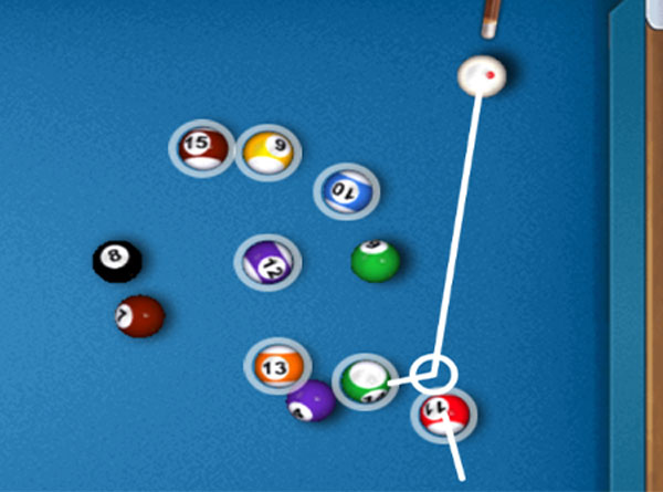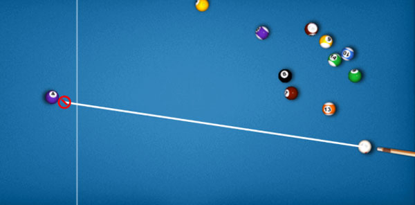 但是切记,只能击打自己的花球或者字球,不可以击打对方的球哦,在超级台球大师里,我们会提示玩家不能击打对方的球。