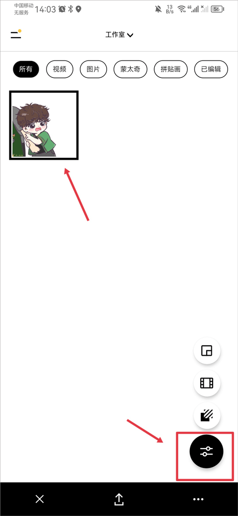 5、接着返回到工作室界面,点击我们刚刚保存的照片,并再次点击编辑器按钮