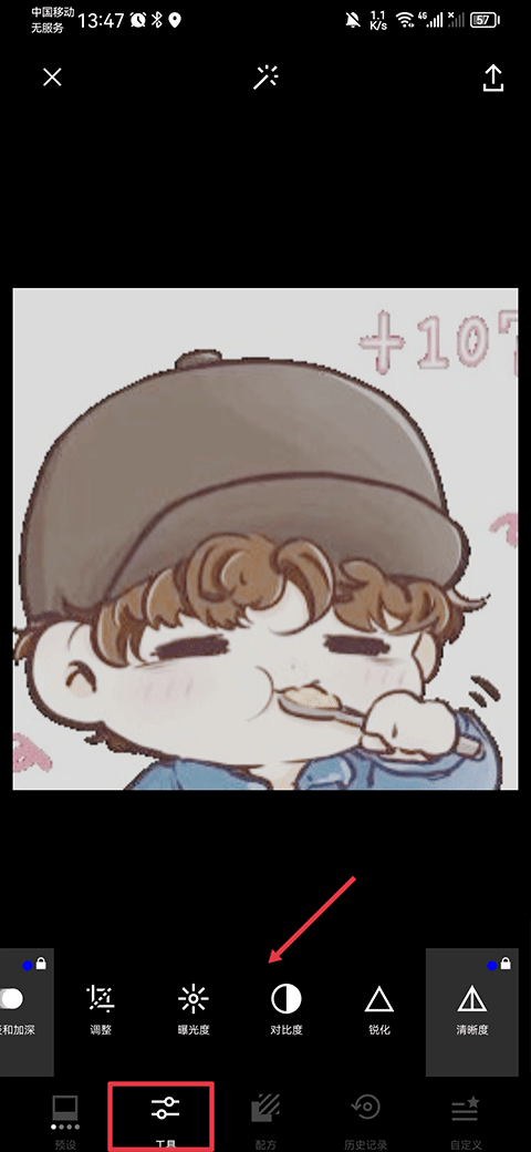 1、进入图片编辑页面后,点击工具功能,然后使用各种工具为图片提升质量