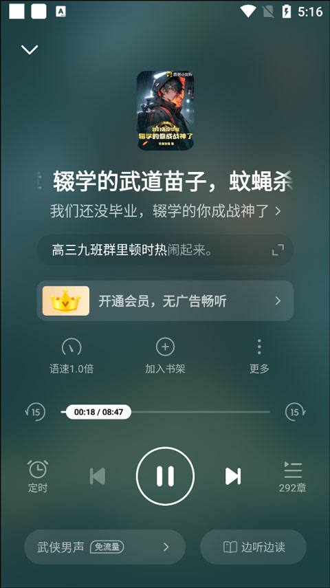 语音朗读功能提供多种声音任你选择,满足你的听书需求,解放双眼,随时随地听小说,海量小说免费听!