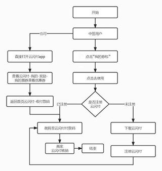 1、已注册云闪付APP的用户会直接跳转至云闪付app直接使用,未注册用户将跳转至云闪付下载链接,完成下载注册后进行核销。
