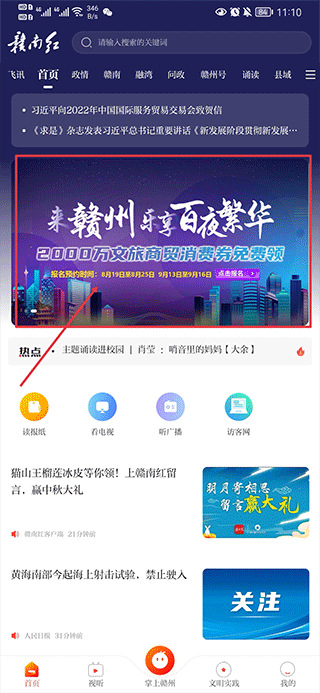 一、怎么领取1、打开赣南红app,在首页中点击消费券入口
