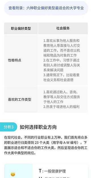 首先,软件会根据你的输入生成一份专业的图像报告,详细解读你的性格特点和职业偏好。这对我来说很有帮助,因为我之前对这些了解不多。通过这个系统,我可以清晰地看到哪些专业和职业最适合我,哪些不太合适。这样在填报志愿时就有了明确的方向,减少了盲目性。