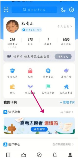 打开软件首界面,在知乎高考中点击志愿者这个板块进入;