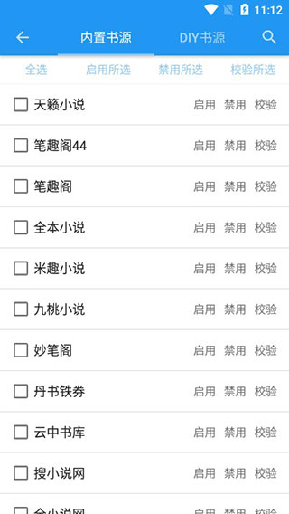 另外,在书源管理中,由许多内置书源,你可以全部启动;