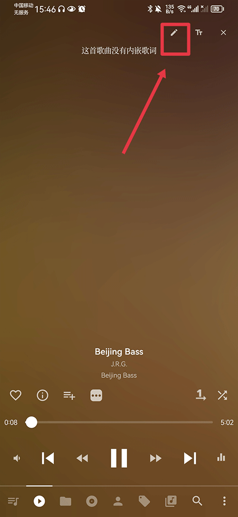 2、若显示这首歌曲没有内嵌歌词,请点击右上角笔的图标