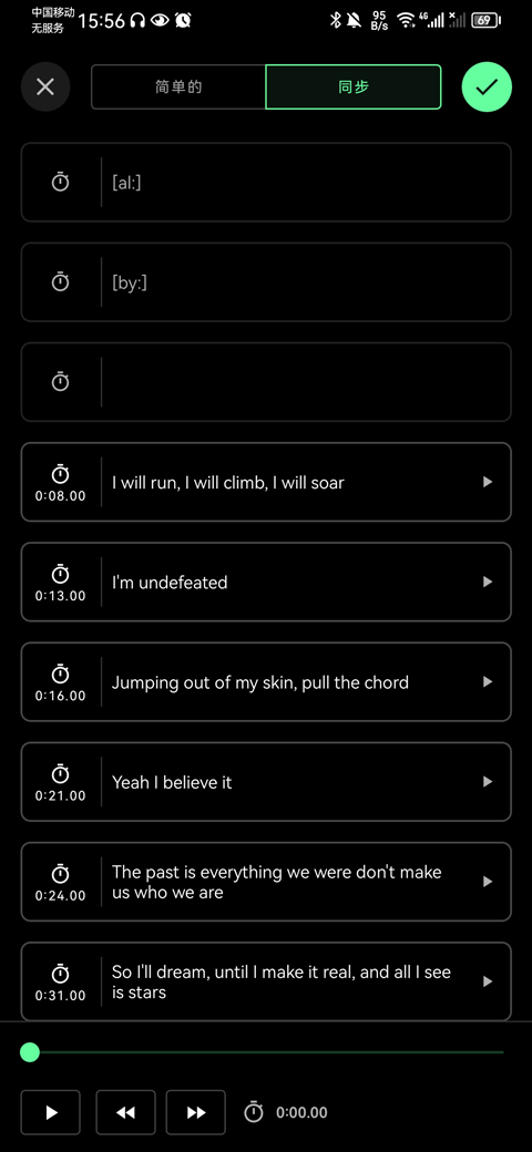 5、另外你也可以在同步界面中播放歌曲,并在歌曲播放时自动同步歌词