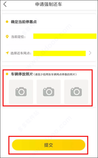 7、并在您所在停车的网点进行拍照上传,请确保车辆停在网点区域,申请之后,客服会进行相应的审核。
