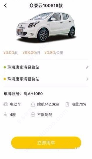 4、点击下方【立即用车】