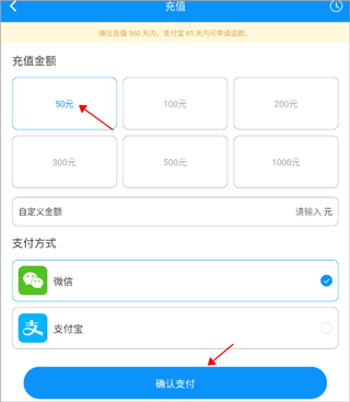 2、输入充值数量,点击支付即可缴费。