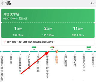4、实时查询:输入线路名称搜索,从显示结果中选择上下行后,显示实时查询界面,设置当前站点,应用会立刻提示出驶向该站点的车辆运行情况及距离该站点最近的车辆运行情况;