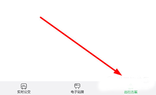 1、首先进入到公交查询界面,在该界面点击下方的“出行方案”选项。