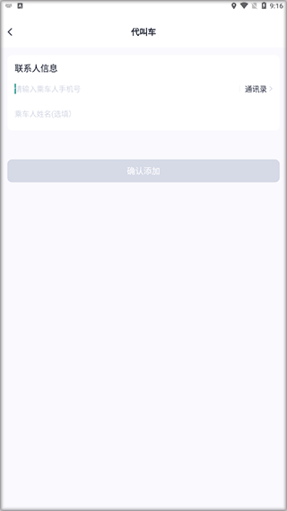 4、点击代叫车,输入联系人信息点击确认添加即可。