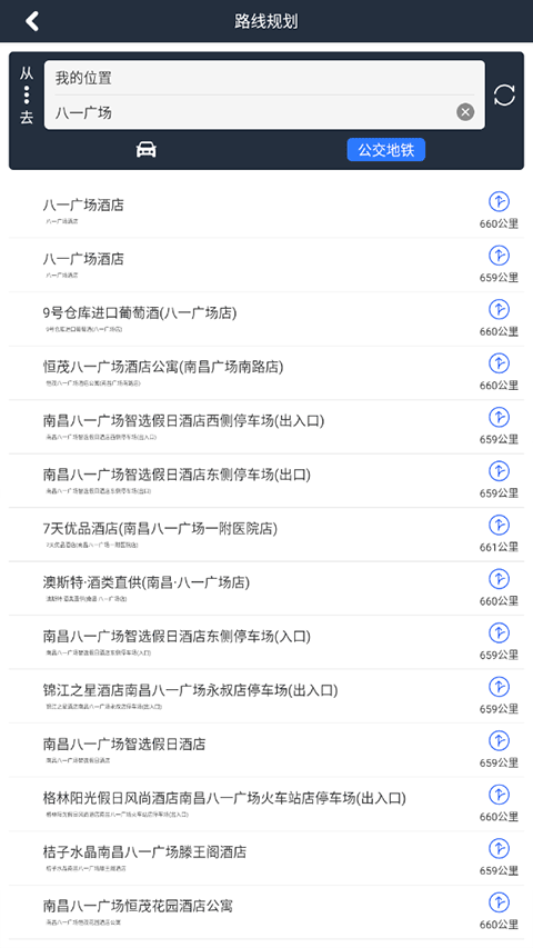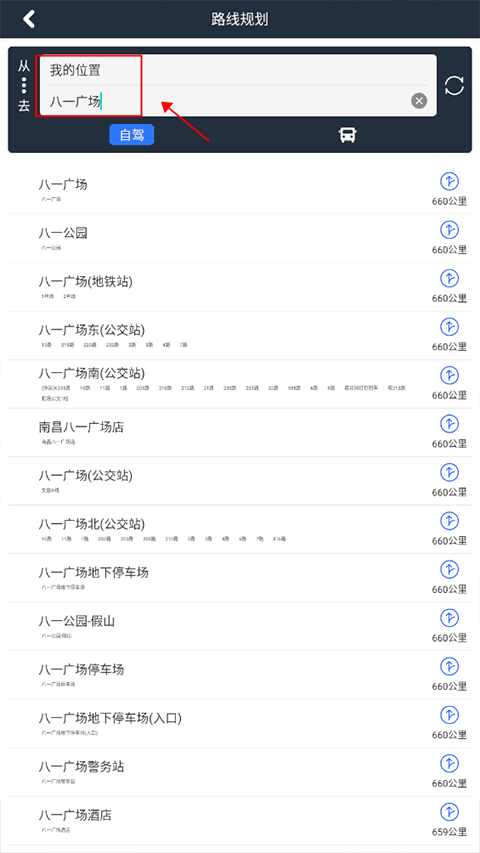 2、输入所在位置和要去的地方,然后选择具体地址即可开始导航。