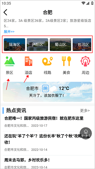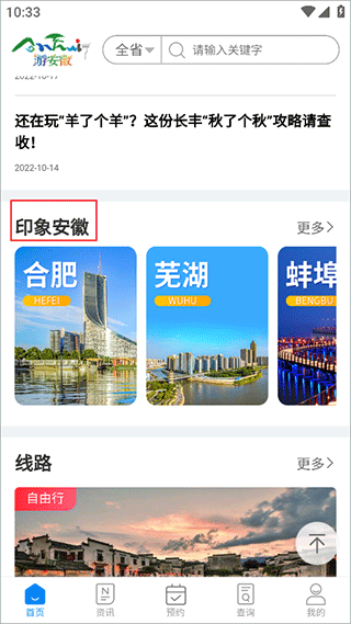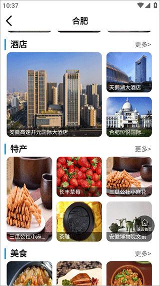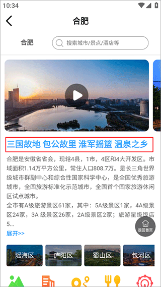 1、下载打开app2、首页向下划,找到印象安徽,选择你想了解的城市点击进去,以合肥为例