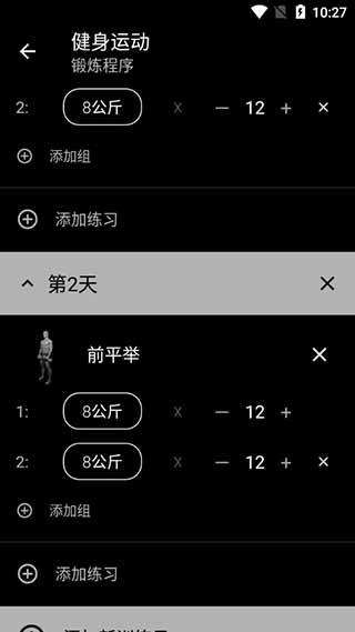 7、之后用同样的方式设置后续动作,规定好一周几天锻炼,什么时候休息。